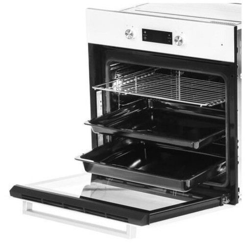 Многофункциональный встраиваемый духовой шкаф BIE 24301 W в белом цвете оснащен сенсорным LED-дисплеем, утапливаемыми поворотными переключателями и блокировкой кнопок от случайного нажатия. Духовка имеет 6 режимов работы и функцию быстрого разогрева Booster, которая мгновенно нагревает духовой шкаф до выбранной температуры и позволяет сразу начинать готовить.