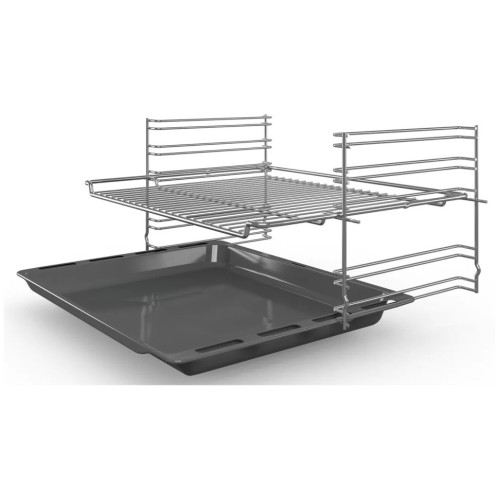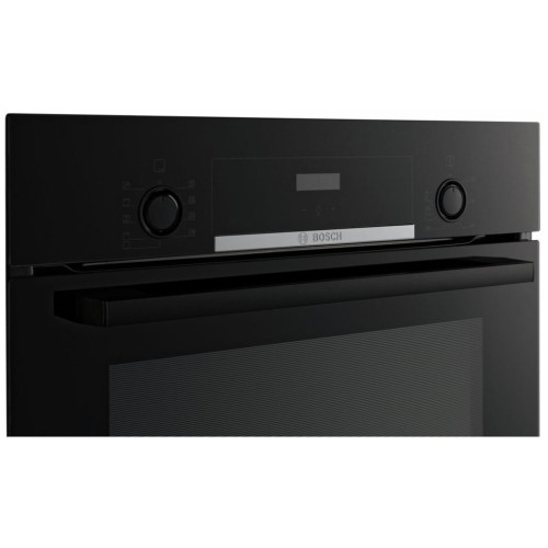 Духовой шкаф Bosch из линейки Serie | 4 оснащен 8 режимами нагрева, включая конвекцию, гриль, разморозку и программу для приготовления пиццы. Управление моделью осуществляется при помощи утапливаемых повторных переключателей, с помощью которых выбирается температура и функция, многофункциональные часы EasyClock настраиваются при помощи сенсорных кнопок. У модели предусмотрена система охлаждения, а также присутствует тройное тройное стекло на дверце, благодаря чему температура фронта не превышает 50 C°.