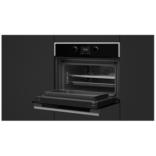 Тип духовки: независимая; Способ подключения: электрическая; Объем духовки, л: 40; Ширина, см: 59,5; Высота, см: 45,5; Глубина, см: 55,9; Цвет корпуса: серебристый; Режимов нагрева: 16; Функция СВЧ; Конвекция; Размораживание; Переключатели: поворотные, утапливаемые; Другие функции и особенности: подсветка камеры, защитное отключение, система защиты от детей, вентилятор охлаждения; Очистка духовки: гидролизная; Телескопические направляющие; Максимальная температура: 270; Мощность подключения:Вт: 3,4; Гриль: да, электрический ; Таймер: да; Дисплей; Дверца духовки: откидная; Число стекол дверцы: 3; Часы