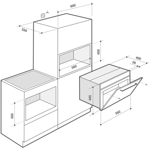 С внутренним объёмом 40 литров, духовой шкаф может приготовить любое блюдо, которое под силу духовому шкафу традиционного размера. В режиме «Кулинарная книга» имеются 15 запрограммированных рецептов, которые обеспечат Вам успех при приготовлении любых блюд. Панель управления «Гурман» с белым LCD-дисплеем Объем рабочей камеры: 70 литров 10 режимов приготовления, включая «Обдув горячим воздухом», «Комбинированный нагрев», «Поддержание в разогретом состоянии» и «Хлеб» Режим «Кулинарная книга»: 15 рецептов Функция «Варио-гриль» с 4 уровнями мощности Дверца с холодным фронтом 2 режима пиролитической очистки 3 уровня установки решеток и противней по высоте Размеры ниши для встраивания (мм): В 450 х Ш 560 х Г 550