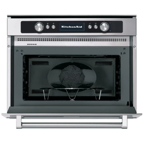 Духовой шкаф KitchenAid KOCCX 45600 это мощность, точность и вместительность. Все это к вашим услугам для претворения в жизнь ваших гастрономических замыслов! Данная модель сочетает в себе: 18 профессиональных функций, 7 традиционных функций, 4 функции микроволновой печи и 7 специальных режимов. Вы можете контролировать уровень нагрева вашего блюда на ЖК-экране духового шкафа. Еще одно преимуществ этого духового шкафа, общий объем которого составляет 40 литров, – функции микроволновой печи, которые делают приготовление блюд еще быстрее, и сейчас вы по-настоящему можете готовить, как шеф-повар. Кроме того, духовой шкаф KOCCX 45600 оснащен специальным температурным щупом, подключенным к дисплею, поэтому вы в любой момент можете проверить температуру внутри продукта. Вы можете запрограммировать духовой шкаф таким образом, чтобы он автоматически выключался тогда, когда температура внутри продукта достигает заданного значения – таким образом, ваше блюдо всегда будет идеально приготовленным. Защитное покрытие нержавеющей стали делает процесс очистки удивительно легким. Кроме того, духовой шкаф оснащен герметичным трехкамерным стеклом, благодаря которому дверь остается холодной даже во время циклов приготовления и очистки.