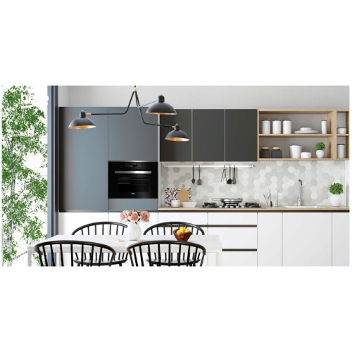 Встраиваемый духовой шкаф черного цвета с сенсорным управлением и 10 режимами приготовления, включая гриль, режим «Пицца», медленное приготовление, поддержание тепла и функцию разморозки. Функция Booster позволяет быстро разогреть духовой шкаф и сэкономить время, проведенное на кухне. Дверца имеет трехслойное стекло.