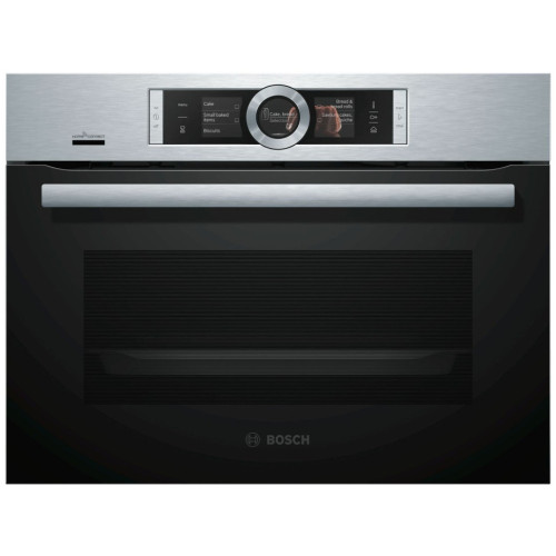 Отличный способ сэкономить время на готовке еды – купить духовой шкаф BOSCH CSG656RS7. Он порадует хозяйку наличием обильных программ, а их насчитывается 14 штук. Выполнена модель в цвете нержавеющей стали, благодаря чему сочетание с современным дизайном интерьера будет идеальным. Помимо этого, высота устройства меньше относительно стандартных габаритов, то есть не составит никакого труда уместить технику. Более того, подключение к варочной панели не требуется, значит, место может быть выбрано любое. Предусмотрен 4D-горячий воздух. Это значит, что при готовке все стороны станут пропеченными, и при этом сочными. Для того чтобы удивить гостей, можно воспользоваться программой для пиццы или грилем. Похвала вашему кулинарному мастерству обеспечена. Дополнительно можно разморозить продукты.