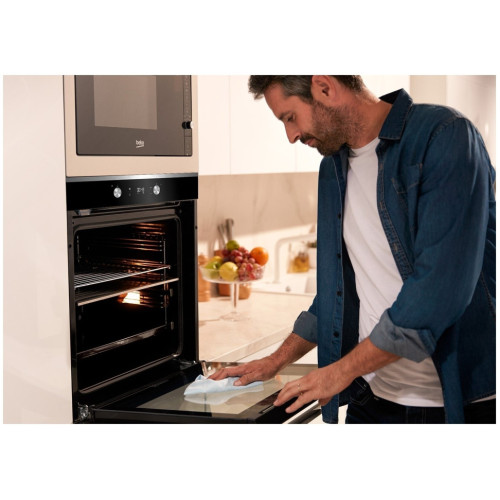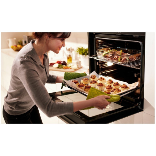 Компактный встраиваемый духовой шкаф объемом 48 л с сенсорной панелью управления и утапливаемыми переключателями специально для небольшой кухни. Духовка имеет функцию Booster для быстрого разогрева и 6 режимов приготовления, включая гриль, медленное приготовление и конвекцию. Функция блокировки кнопок предотвращает случайное включение или выключение духового шкафа для безопасности всей семьи.