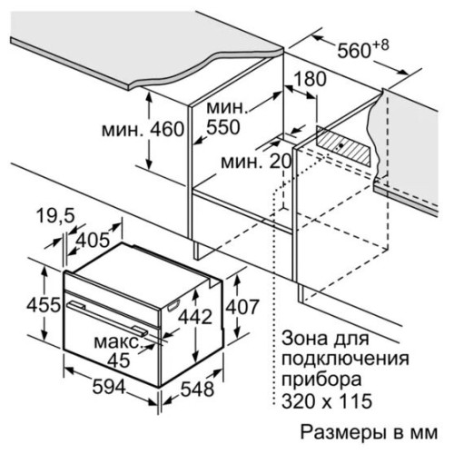 Объем духовки, л 45