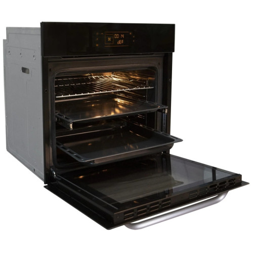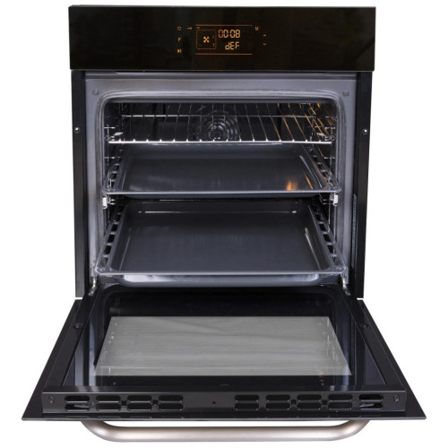Функции: освещение, разморозка, задний нагреватель и вентилятор, верхний и нижний нагрев, верхний и нижний нагрев и вентилятор, пицца (задний и нижний нагрев и вентилятор), гриль, двойной гриль, двойной гриль и вентилятор. Индикация работы термостата и освещения Металлическая ручка дверцы