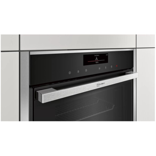 Особенностью этой модели является полностью утапливаемая дверь духового шкафа. Новые духовки FullSteam объединяют в одном приборе духовой шкаф Circo Therm и пароварку. Функция Sous-vide: приготовление пищи в вакуумной упаковке с использованием функции FullSteam открывает новые горизонты вкуса. FullTouch Control: быстрое и легкое управление движением пальца по экрану цветного TFT-дисплея с высоким разрешением. NeffLight: великолепное освещение всех уровней духового шкафа, даже при закрытой дверце.
