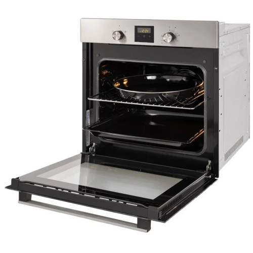 Встраиваемый электрический духовой шкаф Simfer B6EM56016 - описание: Электрический духовой шкаф Simfer B6EM56016 - современная техника для кухни, которая благодаря многообразию режимов, позволяет готовить не только повседневную пищу, но и изысканные блюда. Она снабжена функцией конвекции, которая равномерно распределяя теплый воздух, пропекает блюдо со всех сторон. С помощью удобных поворотных ручек легко выбрать необходимый режим приготовления для любого рецепта. Встроенная подсветка позволит наблюдать за процессом, не открывая при этом дверцу шкафа, а значит сохраняя тепло внутри.Таймер подскажет, когда блюдо будет готово, а тройное стекло защитит от ожога при случайном прикосновении к дверце шкафа. Эта простая в управлении, стильная и современная техника прекрасно впишется как в классический интерьер, так и в самый современный. Особенности: Специальный нагревательный элемент в духовке, создающий высокую температуру, позволяет добиться на продуктах румяной корочки. При этом приготовленная таким образом пища внутри остается нежной и сочной. Общие данные: Габариты: 59.5х59.5x61 см Габариты ниши для встраивания: 60x56x55 см Полезный объем: 58 л Конвекция Гриль Количество режимов работы: 6 Очистка духовки: паровая Принадлежности: стандартный противень с антипригарным покрытием, хромированная решётка Управление и функции: Управление механическое Переключатели: поворотные Утапливаемые ручки Таймер: цифровой Системы безопасности: Автоматическое защитное отключение Дополнительная информация: Электрический термостат Подсветка камеры, вентилятор охлаждения, защитное отключение Дверца духовки: откидная Число стекол дверцы: два Класс энергопотребления: A Вес: 29 кг