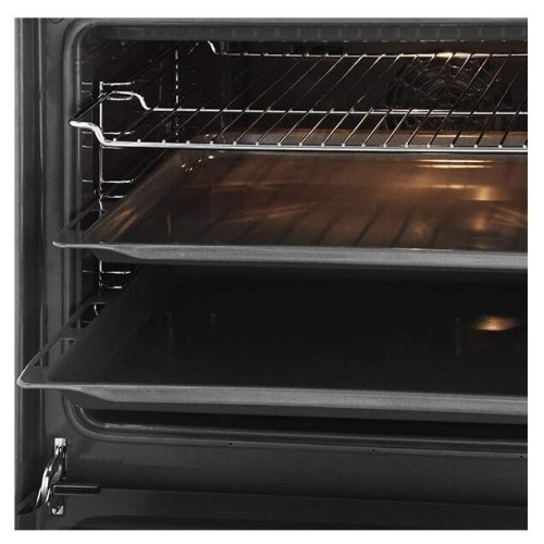 Электрический духовой шкаф имеет всё самое необходимое, чтобы его использование сопровождалось комфортом. Для забывчивых хозяек присутствует встроенный таймер — теперь они не пропустят момент, когда нужно извлечь готовое блюдо из духовки. Чтобы после завершения приготовления слишком медленно остывающая дверца не привела к нагреву кухонного гарнитура и других электроприборов, вентилятор охлаждения быстро остудит духовку до комнатной температуры. Духовой шкаф готов предложить в распоряжение хозяйки 8 режимов работы, наиболее предпочтительный из которых можно выбрать при помощи удобной панели управления. Функция гриля позволит вам запечь продукт до хрустящей корочки. Конвекция обеспечит равномерное распределение тепла внутри духовки по всему её объёму. Если поместить замороженный продукт внутрь духового шкафа и активировать программу размораживания, то внутри него начнет циркулировать воздух комнатной температуры, благодаря чему продукт разморозится гораздо быстрее традиционного способа разморозки. Режим 3D Hotair позволяет добиться одинаково превосходного результата при приготовлении на всех трёх уровнях (вместе или в отдельности) благодаря равномерному распределению нагретого воздуха.