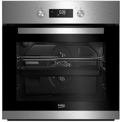 Beko BDE22300X - встраиваемая духовка с 6 режимами приготовления, включая конвекцию и гриль, функцией Booster для быстрого разогрева и электронным таймером. Удобное управление с помощью сенсорных кнопок и механических переключателей, которые утапливаются в корпус духовки. Полностью стеклянная поверхность дверцы снимается для удобной очистки. Функция блокировки кнопок предотвращает случайное включение или выключение духового шкафа для безопасности всей семьи.