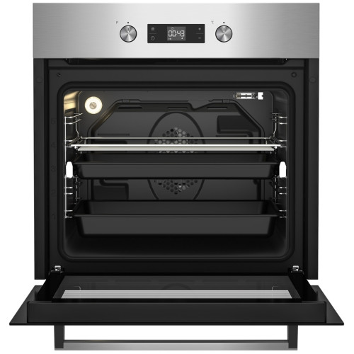 Многофункциональный духовой шкаф Beko BIM22305X цвета нержавеющей стали имеет объем 71 л и предлагает 8 режимов приготовления, включая традиционные нижний и верхний нагрев, гриль, разморозку и специальную программу 3D-приготовления, на которой можно готовить несколько блюд одновременно. Управление духовкой предлагает удобные утапливаемые переключатели и сенсорный LED-дисплей. 3D выпекание Специальная функция 3D-приготовления, при котором можно одновременно готовить несколько блюд. Хорошая видимость готовящегося блюда Хотите наблюдать за процессом приготовления, но не хотите открывать дверцу, чтобы не выпускать жар? Галогенная подсветка хорошо освещает нишу духового шкафа, позволяя следить за своим кулинарным шедевром через плотно закрытую дверцу. Безопасное и удобное извлечение противня Если вам трудно доставать из духовки тяжелые блюда, телескопические направляющие упростят вашу жизнь. Система направляющих позволяет полностью выдвинуть противень из духовки и обеспечивает его поддержку.