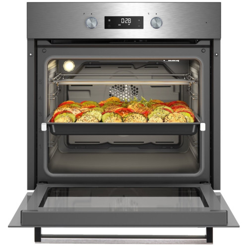 Beko BIM22304XCS - встраиваемый духовой шкаф объемом 71 л имеет 8 режимов работы, включая 3D-приготовление, гриль, медленное приготовление и разморозку. Духовка оснащена сенсорным LED-дисплеем и удобными утапливаемыми поворотными переключателями выбора температуры и режима приготовления. Благодаря каталитическому покрытию и полностью стеклянной дверце духовой шкаф легко чистить после использования.