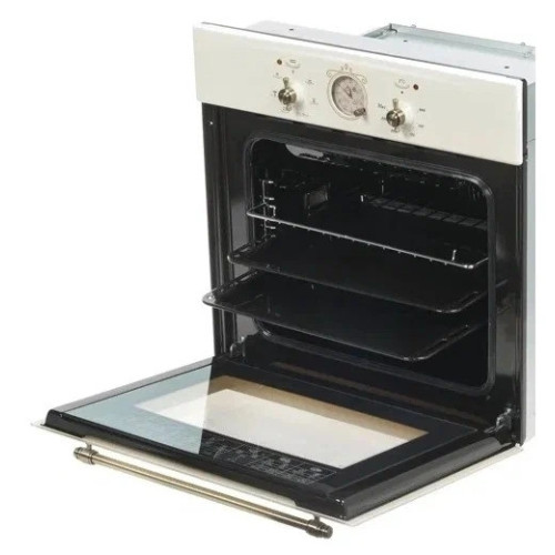 Электрический духовой шкаф. Классический дизайн современного образца, управление осуществляется двумя поворотными ручками: выбор режима работы и температуры нагрева. Есть часы и звуковой сигнал окончания работы программы. Помимо классического нагрева с автоматическим поддержанием заданной температуры, в комплектации присутствует электрогриль. Есть конвекция, равномерно распределяющая жар внутри шкафа. Запросто приготовить курицу-гриль, подрумянить выпечку, целиком запечь кусок мяса - духовой шкаф позволяет создавать кулинарные шедевры легко и просто. Продуман и контроль за готовностью блюда, внутреннее освещение - двухточечное, через двойное стекло прекрасно все видно и без открытия дверцы. Уход за прибором не доставляет проблем, для удобного доступа направляющие для противней и дверца - выполнены съемными. Размеры монтажного проема - 56x55x58 см (ШхГхВ), сетевой шнур и вилка в наличии. Ключевые преимущества: - Таймер; - Усиленный гриль с конвекцией; - - Подсветка духовки двойная; - Съемные проволочные направляющие духовки.