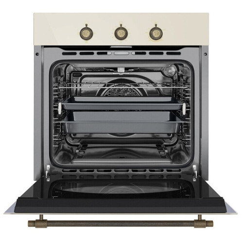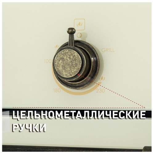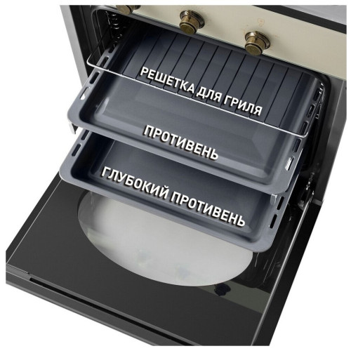 Основные характеристики Вид газовый Объем рабочей камеры, л 67 Высота, см 59.8 Ширина, см 59.5 Глубина, см 58.3 Габариты (В х Ш х Г), см 58.9 х 59.5 х 58.3 Габариты ниши для встраивания (В x Ш x Г), см 58.5 — 59 х 55.6 — 59 х 56 дизайн И управление Цвет слоновая кость Цвет фурнитуры бронзовый Дизайн (коллекция) Ретро Особенности дизайна металлическая ручка Управление механическое Элементы управления цельнометаллические полнотелые ручки Таймер Да Звуковой сигнал Да режимы И функции Количество режимов 4 Работа гриля при закрытой дверце Да Нижний газовый нагрев с вентилятором Да Газовый гриль Да Нижний газовый нагрев/традиционное приготовление Да Внутреннее освещение Да оснащение И особенности Очистка традиционная Внутренняя поверхность камеры эмаль легкой очистки Количество стекол дверцы 3 Внутреннее стекло выдвигается для очистки Да Электроподжиг Да Количество уровней установки противней и решеток 5 комплектация Стандартный поддон Да Глубокий поддон Да Направляющие 5-уровневые хромированные, телескопические Hettich Решетка Да Переходники для разных типов газа Да Стеклянный поддон из жаропрочного стекла SHOTT (приобретается отдельно) Да функции безопасности Тангенциальное охлаждение Да Полный газ-контроль Да дополнительно Особенности модели внешнее и два внутренних стекла выполнены из немецкого жаропрочного стекла SCHOTT