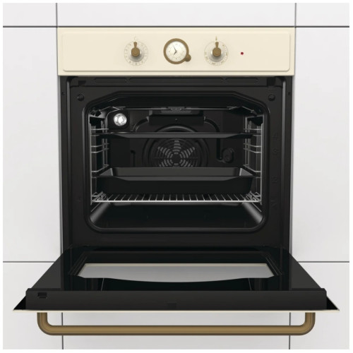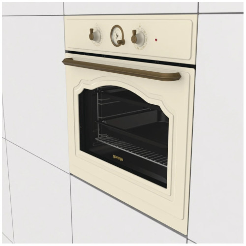 Духовой шкаф Gorenje BO7530CLI в цвете слоновой кости с бронзовой фурнитурой из коллекции Classico выполнен в утонченном дизайне и прекрасно подчеркнет классический интерьер кухни. Это многофункциональное, независимое, электрическое устройство. Технологии BigSpace/SuperSize позволили увеличить полезный объем духовой камеры до 71 литра, вариогриль PerfectGrill поможет регулировать размеры нагреваемой поверхности, в результате блюдо прогревается равномерно. Благодаря сводчатой форме потолка HomeMade Plus мясо, рыба, птица или овощи пропекаются полностью, но при этом сохраняют сочность внутри, а хлеб получается воздушным с хрустящей корочкой. Для приготовления пищи имеется 8 программ. Этого вполне достаточно, чтобы готовить оптимальное количество блюд по индивидуальным предпочтениям. Тип управления — механический с аналоговым программатором и поворотными переключателями, он используется достаточно давно, но не перестает быть наиболее надежным, проверенным и удобным для приборов подобного типа. Непосредственно регулировка температуры осуществляется с помощью контакта пользователя со стандартными переключателями, они позволяют очень точно устанавливать температурный режим. Комфортную и экологичную эксплуатацию обеспечивает система очистки паром AquaClean, которая позволяет не использовать химические моющие средства и улучшенное покрытие из пиролитической эмали SilverMatte.