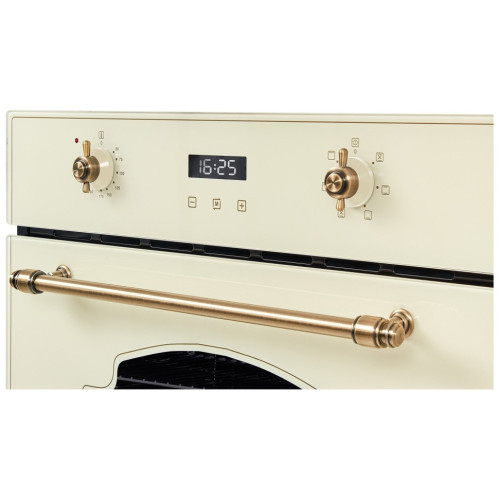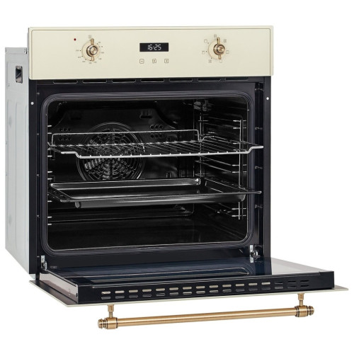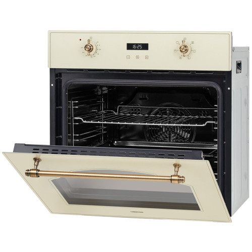 Встраиваемый электрический духовой шкаф HIBERG VM 6260 1YR в ретро-дизайне идеально подойдет для кухни в классическом стиле, кантри или Прованс. Класс эффективности А позволяет экономить электроэнергию. Внутренний объем 70 л подходит для приготовления пищи на большую семью. Откидная дверца духовки с доводчиками, а так же оснащена двумя термостойкими стеклами. Материал фасада – закаленное стекло. Кольцевой нагревательный элемент, расположенный на задней стенке внутри камеры, способствует равномерному распространению жара по всему пространству духовки. Максимальная температура нагревания 250оC. 6 режимов приготовления регулируются поворотными металлическими переключателями, а на электронном дисплее можно выставлять таймер или часы. Благодаря функции гриль, вы можете приготовить мясо, рыбу или овощи с аппетитной корочкой. 5-ти уровневые хромированные направляющие позволяют плавно и легко выдвигать противень и решетки за пределы духовки. Внутренняя подсветка духового шкафа позволяет следить за приготовлением пищи, не открывая дверцы. Каталитические пластины, которыми оборудован внутри духовой шкаф, расщепляют жир и загрязнения во время приготовления при температуре от 150 градусов. Это обеспечивает легкий уход за внутренним покрытием Интегрированная система охлаждения корпуса не допускает перегрева и обеспечивает полную безопасность. Особенности и преимущества: - ретро-дизайн; - цвет фасада: бежевое стекло; - электронное управление; - таймер; - функция гриль; - система охлаждения духовки; - конвекция; - каталитическая самоочистка. Наслаждайтесь приготовлением любимым блюд в духовом шкафу премиум -класса HIBERG VM 6395 YR!