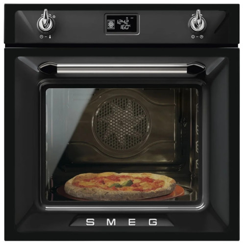 Духовка по-настоящему расширяет возможности на кухне: вы можете приготовить в ней всё, начиная от простых пирогов и заканчивая запечённым поросёнком под изысканным соусом. Однако не каждая духовка удобна и имеет режимы готовки. Чтобы решить данную проблему, вы можете многофункциональный духовой шкаф с функцией Пицца SMEG SF6922NPZE1. В чём его плюсы? Этот духовой шкаф очень удобен в использовании и создавался для экономичной работы. Его приятный дизайн сможет украсить любую, даже самую изысканную кухню. Кроме этого, он: имеет встроенную авторегуляцию температуры во время готовки; подходит для приготовления любых блюд. С такой духовкой вы сможете серьёзно улучшить своё умение готовить. Многофункциональный духовой шкаф. Фурнитура Victoria, эффект нержавеющей стали. Большой LCD-дисплей. Поворотные переключатели. 10 функций приготовления. Функция «Пицца». Функции очистки: паровая. Дополнительные функции: размораживание по времени, поднятие теста, шаббат, поддержание тепла, ECO light. Автоматические рецепты приготовления: 20. Электронный программатор: таймер, отсрочка включения, автоматическое выключение. Акустический сигнал окончания приготовления. Режим SHOWROOM. Режим ограничения мощности. Электронный контроль температуры (30-280С). Быстрый предварительный разогрев. Полезный объем 65 л. 5 уровней приготовления. Металлические направляющие. Эмаль Ever Clean. Верхняя защитная панель. Внутреннее освещение – 2 галогенные лампы. Внутреннее стекло дверцы сплошное съемное. Тангенциальная система охлаждения. Блокировка управления. 3 стекла дверцы, «холодная дверца». Автоматическое отключение при открытой дверце аксессуары В комплекте: Противень глубокий (40 мм): 1. Противень (20 мм): 1. Решетка для противней: 1. Решетка с ограничителем: 2. Телескопические направляющие полного выдвижения: 1. Камень + лопатка для пиццы: 1. Цвет белый Внутреннее освещение 2 галогенные лампы Уровней приготовления 5 Полезный объем 65 Функций приготовления 9 Тип встраиваемый независимый электрический Автоматические рецепты приготовления 20 Серия Victoria Цвет черный