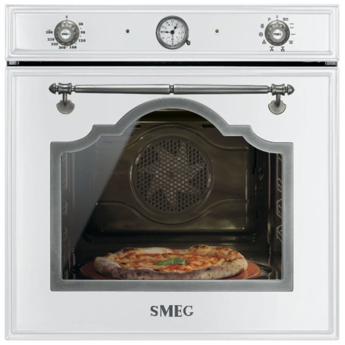 Эстетика и управление: Белый Фурнитура состаренное серебро Аналоговый программатор, часы Поворотные переключатели Функции/Опции/Температура: 9 функций приготовления Функции очистки: пиролиз Таймер, отсрочка включения и автоматическое отключение в конце программы Акустический сигнал окончания приготовления Электронный контроль температуры (50 280 С) Быстрый предварительный разогрев Внутренняя камера: Полезный объем 65 л 5 уровней приготовления Металлические направляющие Эмаль Ever Clean 2 галогенные лампы (40 Вт) Внутреннее стекло дверцы сплошное съемное Петли SoftClose Безопасность: Тангенциальная система охлаждения 4 стекла дверцы, холодная дверца Автоматическое отключение при открытой дверце Блокировка дверцы при пиролизе