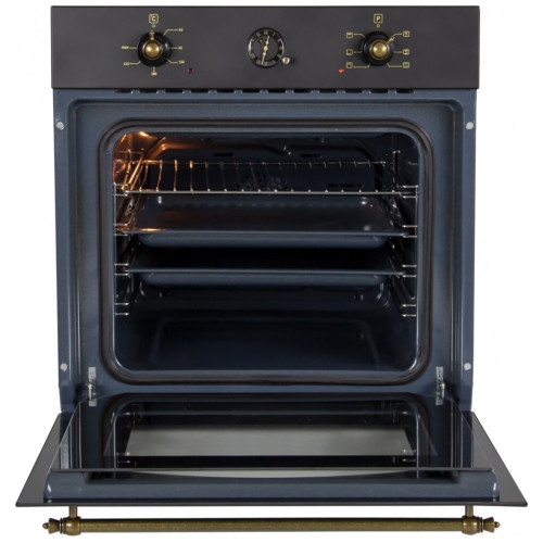 Стилизованный под ретро встраиваемый электрический духовой шкаф MBS DE-606BL поможет вам приготовить любимые блюда вашей семьи качественно и быстро. Эта модель черного цвета с металлической фурнитурой и часами бронзового цвета будет потрясающе смотреться в интерьере кухни классического стиля, стиля кантри или прованс. Духовой шкаф MBS DE-606BL имеет шесть режимов работы, а управляется удобными и красивыми, как будто старинными, ручками. Объем духовки целых 62 литра, а процесс ее очищения происходит посредством гидролизной очистки. Этот духовой шкаф комплектуется одним универсальным противнем, решеткой для гриля. При желании вы всегда сможете докупить дополнительный противень, камень для пиццы и комплект телескопических направляющих. Вся кухонная техника бренда MBS соответствует всем современным европейским стандартам, а гарантия производителя составляет 3 года.