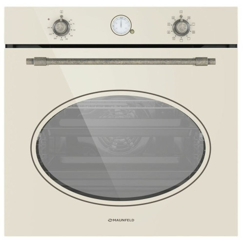 Артикул: 625-584 Встраиваемый электрический духовой шкаф Maunfeld EOEFG.769RIB.RT Духовой шкаф Maunfeld EOEFG.769RIB.RT из серии Master выполнен в цвете «слоновая кость» с фурнитурой бронзового цвета. Управление духовкой осуществляется при помощи цельнометаллических ручек управления, что находятся на панели из жаропрочного стекла, и аналогового таймера в ретро-стиле. У модели 10 рабочих функций, среди которых полная конвекция и гриль, а также режим интенсивной выпечки и двойного гриля. Ключевые преимущества: Тангенциальное охлаждениеТройное стекло дверцыТелескопические направляющие