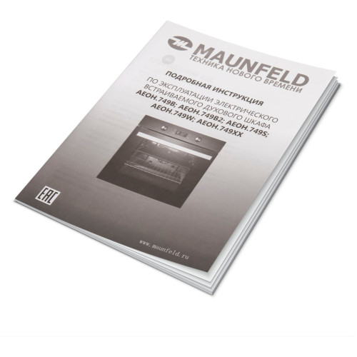 Духовой шкаф электрический MAUNFELD AEOH.749B2 черный. Духовой шкаф MAUNFELD AEOH.749 имеет независимый тип установки, класс энергопотребления А+. Оснащен: 9 основными режимами, сенсорным управлением, электронным сенсорным программатором. Переключатели серебристого цвета Push Pull (утапливаемые), ручка духовки из металла окрашена в серебристый цвет. Большой сенсорный дисплей оснащен белой подсветкой. Чёрный/чёрное прозрачное стекло с трамп-линиями Объем 74 л. 1. Функция нижнего и верхнего нагрева 2. Функция нижнего нагрева 3. Функция конвекционного нагрева 4. Гриль 5. Конвекции с грилем 6. Половинный гриль 7. Разморозка 8. ECO (энергосберегающий режим) 9. Внутренний свет/освещение Комплектация: 1 набор хромированных направляющих 1 поддон для выпечки хлеба 1 решетка 1 уровень телескопических направляющих Тройное стекло дверцы, без доводчика Технические характеристики: Тип: Электрическая Тип управления: Сенсорное Ширина, мм: 600 мм Объем: 74 л Конвекция: Есть Дисплей: Есть