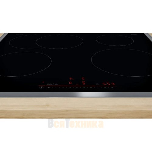 Индукционная варочная панель Bosch PIF645HB1E из серии Serie 6 – это сочетание элегантного дизайна и инновационных технологий. Дизайн панели привлекает внимание своей стильной черной стеклокерамической поверхностью и рамкой из нержавеющей стали.