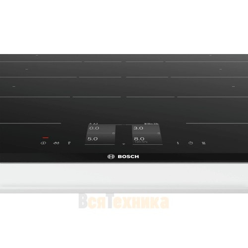 Bosch PXY875KW1E — это индукционная варочная поверхность на четыре конфорки, которые могу попарно объединяться в зоны FlexInduction. Выполнена из стеклокерамики чёрного цвета. Управляется при помощи сенсорных кнопок. Предусмотрено 17 ступеней нагрева. Безопасность эксплуатации обеспечивает блокировка от детей, индикация остаточного тепла и автоматическое отключение.