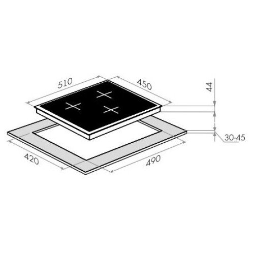 Варочная панель выполнена в элегантном черном цвете (BG — Black Glass) и оснащена премиальной стеклокерамической поверхностью, устойчивой к механическим воздействиям и перепадам температур. Безрамный дизайн и скругленные углы позволяют гармонично интегрировать ее в любую столешницу, создавая эффект бесшовного перехода. Сенсорная панель управления с цифровой индикацией выглядит современно и лаконично.