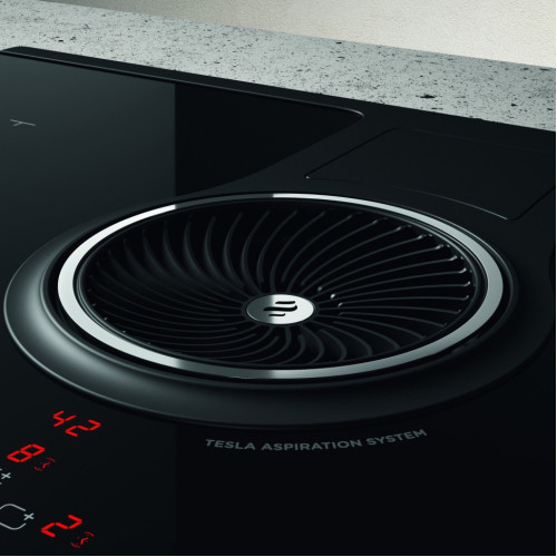 Вытяжка совмещенная с варочной поверхностью от компании Elica. Система забора воздуха оснащена передовым электродвигателем специально разработанным для данной модели, который обладает высокими показателями производительности при низком уровне шума и экономном энергопотреблении. Благодаря интеллектуальной связи с варочной поверхностью, NikolaTesla получает информацию от конфорок и автоматически выбирает оптимальный режим работы вытяжки. Скорость воздушного потока создаваемого двигателем NIKOLATESLA составляет 5 м/с, тогда как испарения от приготовления пищи не развивают больше 1 м/с, что означает что вытяжка надежно затягивает все испарения.