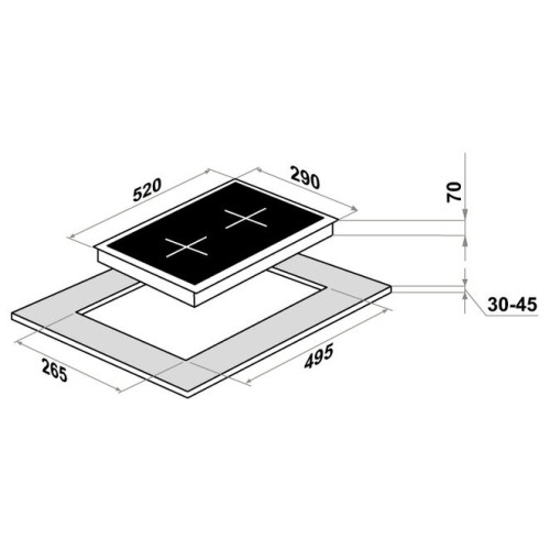 тип панели: индукционная, количество конфорок: 2, материал панели: стеклокерамика, установка: независимая, переключатели: сенсорные, ширина: 29 см, глубина: 52 см, специальные конфорки: индукционная, конфорок индукционных: 2, безопасность: защитное отключение конфорок, индикатор остаточного тепла, кнопка блокировки панели, функции: Booster