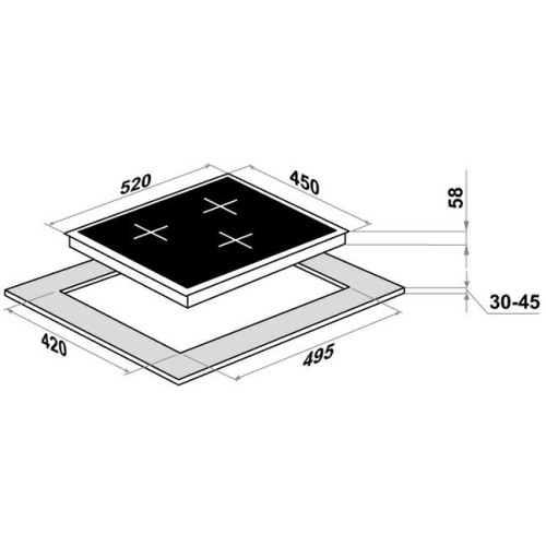 тип панели: индукционная, количество конфорок: 3, материал панели: стеклокерамика, установка: независимая, переключатели: сенсорные, ширина: 45 см, глубина: 52 см, специальные конфорки: индукционная, конфорок индукционных: 3, безопасность: защитное отключение конфорок, индикатор остаточного тепла, кнопка блокировки панели, функции: Booster, автоматика закипания, таймер, максимальная потребляемая мощность: 5.80 кВт