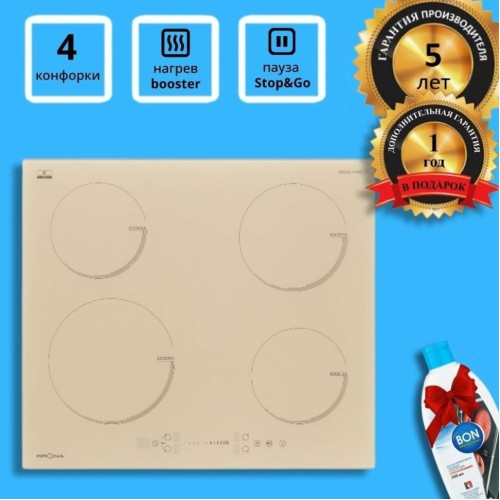 Индукционная варочная поверхность VENTO 60 IV B шириной встраивания 60 см выполнена из японской стеклокерамики NEG в цвете слоновая кость. Модель отлично впишется в дизайн современных кухонь, а также станет прекрасным дополнением неоклассических интерьеров. Варочная панель оснащена 4 зонами индукционного нагрева с усилением мощности BOOSTER на каждую зону, датчиком автоматического определения наличия посуды, защитой от перелива и перегрева. Удобство использования обеспечат функция паузы STOP&GO, а также таймер автоотключения до 99 минут на каждую зону нагрева.