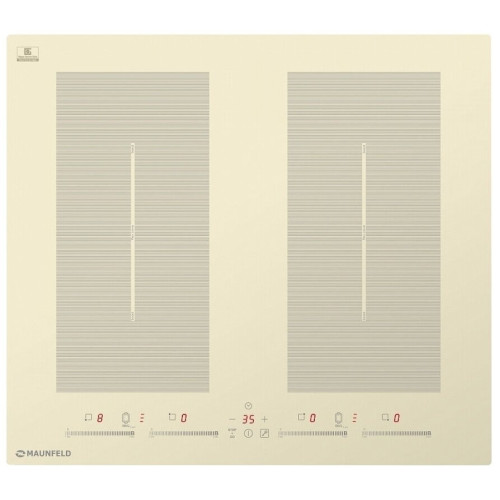 Индукционная панель MAUNFELD EVI.594.FL2(S)-BG бежевый Преимущественные особенности индукционной варочной панели:Индикация ступени нагрева (от 0 до 9), функция барбекю, таймер приготовления, таймер минутный, детектор диаметра посуды, индикатор остаточного тепла, замок от детей, блокировка всех элементов в случае мокрой поверхности, автоматическое отключение, бустеры (разгонный блок) для каждого индукционного элемента в отдельности и для мостов в целом.Управление:Фронтальное управление происходит с помощью слайдера, сенсора.Материал исполнения:Индукционная панель выполнена из высококачественного, термоустойчивого стекла Nippon Electric Glass.Nippon Electric Glass - японский производитель стекла. Входит в тройку крупнейших производителей стекла в мире.Мощность конфорок:4 конфорки мощностью: мощность каждого моста при объединение конфорок 2600/3000 (бустер), верхняя левая 1500/ 2000 (бустер), нижняя левая 2000/2600 (бустер), верхняя правая 2000/2600(бустер), нижняя правая 1500/2000 (бустер).Мощность конфорок, Вт.: 7 000Ширина: 600 ммРазмеры для встраивания: 560х490 мм Цветовая гамма: Модель выпускается в черном и бежевом цвете.