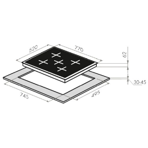 | Безопасность | защитное отключение конфорок, индикатор остаточного тепла, кнопка блокировки панели |