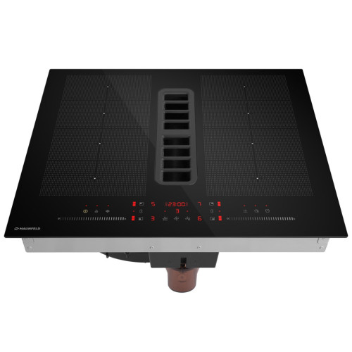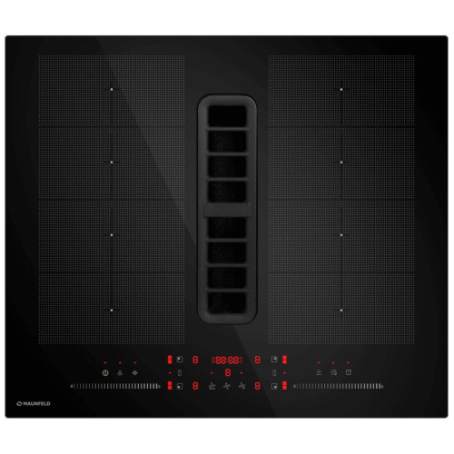 Индукционная варочная панель MAUNFELD сочетает в себе утонченный баланс эстетики и функциональности. Благодаря индукционной технологии она осуществляет нагрев посуды, а не поверхности. Четыре независимые варочные зоны расположены на черном закаленном стекле. В центре находится элегантная и прочная решетка, которая скрывает мощную зону вытяжки. Индукция быстро и точно нагревает непосредственно ингредиенты в посуде, в то время как поверхность остается холодной и безопасной. Она также обеспечивает мгновенное изменение температуры. При этом гладкая поверхность упрощает очистку. Bridge Induction -  это высокая производительность, возможность объединения двух конфорок, для регулирования одним элементом управления. Мощность и таймер этих конфорок изменяются одновременно. Индукционный мост предназначен для приготовления в посуде большого размера. Максимальная мощность именно тогда, когда это необходимо. Функция BOOSTER, которой оснащена эта варочная панель, является идеальным решением для тех случаев, когда требуется быстрое достижение высокой температуры нагрева. Контроль каждого этапа приготовления. Легко! Регулируемый таймер с отключением поможет без хлопот следить за приготовлением. Его можно установить на время до 99 минут, варочная панель сама прекратит нагрев.