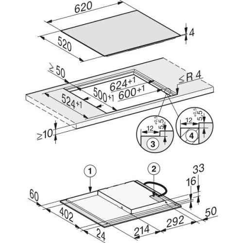 Безопасность защитное отключение конфорок, индикатор остаточного тепла, кнопка блокировки панели