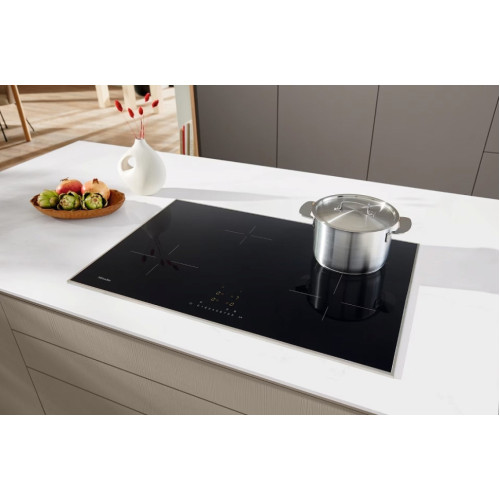 Индукционная варочная панель Miele KM 7373 FR - это современное кухонное оборудование, обеспечивающее высокую эффективность и комфорт при приготовлении пищи. Произведенная в Германии, эта модель оснащена четырьмя конфорками и двумя зонами PowerFlex, что позволяет готовить несколько блюд одновременно. Мощность каждой конфорки варьируется от 1350 до 3000 Вт, а зоны PowerFlex - до 3650 Вт, что обеспечивает быстрый нагрев и экономичное использование энергии. Панель выполнена из стеклокерамики черного цвета и украшена рамкой из нержавеющей стали, что придает ей современный и стильный вид. Сенсорное управление ComfortSelect обеспечивает простоту и удобство использования, позволяя выбирать из девяти ступеней мощности. Встроенный кухонный будильник помогает контролировать время приготовления пищи, а индикатор работы позволяет видеть, когда панель включена. Одной из особенностей этой модели является функция распознавания посуды и размера посуды. Это значит, что панель автоматически адаптирует мощность и время нагрева в соответствии с размером и материалом посуды, что обеспечивает оптимальные результаты приготовления пищи. Функция поддержания тепла позволяет сохранять блюда теплыми до подачи на стол, а функция Stop&Go позволяет приостановить процесс приготовления и затем продолжить его без потери настроек. Для обеспечения безопасности использования, панель оснащена функцией автоматического выключения всех конфорок, функцией блокировки и защитным отключением. Встроенный охлаждающий вентилятор предотвращает перегрев, а индикатор остаточного тепла показывает, когда поверхность еще горяча после использования. Автоматическая функция Con@ctivity позволяет синхронизировать панель с вытяжкой, автоматически регулируя мощность вентиляции в зависимости от интенсивности приготовления пищи. С шириной 80 см и глубиной 52 см, эта панель идеально подходит для больших кухонь. Она может быть установлена накладным способом, что обеспечивает гибкость при планировании кухонного пространства. Гарантия на панель составляет 1 год, что подтверждает ее высокое качество и надежность. Ключевые преимущества: Высокая мощность и функциональность, благодаря четырем конфоркам и двум зонам PowerFlex. Современный дизайн с использованием стеклокерамики и нержавеющей стали. Продвинутые функции безопасности, включая автоматическое выключение и функцию блокировки Высoтa (см) 5 Ширинa (см) 80 Глубинa (см) 52 Общее количество конфорок 4 Функции индукционные конфорки Материал поверхности стеклокерамика Тип варочной панели стандартная Подключение варочной панели к электросети Дизайн "домино" - Индукционный нагрев + ОПИСАНИЕ ПРИБОРА Ширина (см) 80 Высота (см) 5 Глубина (см) 52 Габариты (Ш х В х Г, см) 80 x 5 x 52 Размер выпила в столешнице (Ш х Г, см) 80 x 52 Тип нагревательных элементов индукция Материал варочной поверхности стеклокерамика Встраивание заподлицо + Обработка краев ровные края Управление сенсорное Страна-производитель Германия Гарантия 12 месяцев Цвет черный ОСНОВНЫЕ ХАРАКТЕРИСТИКИ Номинальная мощность (Вт) 7300 Количество конфорок 4 Количество индукционных конфорок 4 Расположение панели управления фронтальная часть БЕЗОПАСНОСТЬ Защита от детей + Автоотключение при перегреве + Автоотключение при выкипании + Индикатор остаточного тепла + ФУНКЦИОНАЛ Таймер + Свободное размещение посуды - Про
