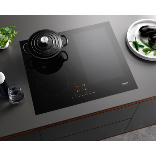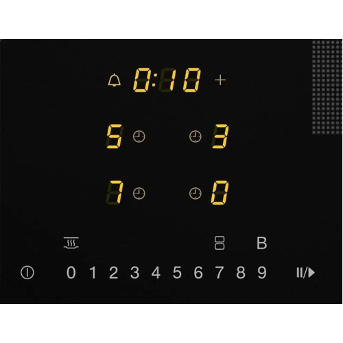 Индукционная панель конфорок с сенсорным управлением С зоной приготовления PowerFlex для максимальной производительности Удобный выбор с помощью цифровой клавиатуры – ComfortSelect 4 зоны приготовления, вкл. 1 зону нагрева PowerFlex Шириной 626mm с рамой из нержавеющ. стали для установки на поверхность Быстрый нагрев – TwinBooster