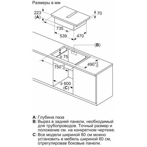 Индукционная варочная панель с интегрированной вытяжкой оснащена съёмным магнитным переключателем TwistPad, который позволяет буквально одним касанием пальца точно отрегулировать степень нагрева. Лёгким прикосновением к TwistPad выберите нужную варочную зону и поверните переключатель до требуемого уровня мощности. TwistPad снимается с варочной панели, оставляя поверхность гладкой, чтобы её было легче протирать. Больше гибкости в приготовлении с FlexInduction. Не ограничивайте себя в выборе размера и формы посуды. Зона FlexInduction поможет воплотить кулинарные идеи любого масштаба. Варочная панель автоматически распознает посуду и подключит нужное количество индукторов. С функцией Power Move, передвигая посуду по варочной зоне, вы можете изменять мощность нагрева варочной панели. Пассеруйте в ближней части, доводите до готовности в средней и поддерживайте горячим в дальней. Освободите свой творческий потенциал для кулинарного вдохновения. С индукционной варочной панелью NEFF вы можете забыть о настройках, потому что функция PowerTransfer сама запоминает их. Перемещайте посуду как угодно в пределах зон FlexZone, и все настройки будут перемещены вслед за ней. Нужно лишь подтвердить перенос настроек. С технологией Home Connect вы можете наслаждаться свободой, которую даёт возможность управления прибором с помощью приложения на смартфоне или планшете. Теперь не обязательно находиться рядом с прибором, чтобы начать, отслеживать и корректировать процесс приготовления пищи. Уникальный датчик Frying Sensor облегчает приготовление блюд на сковородке: выберите один из пяти уровней нагрева, а остальное сделает датчик. Когда посуда прогреется, варочная панель подаст визуальный и звуковой сигналы. Останется только добавить ингредиенты и наслаждаться процессом приготовления. Высокоэффективный двигатель с инновационной бесщёточной технологией обеспечивает особенно тихую и энергоэффективную работу. Шум от вытяжки не помешает творческому процессу приготовления ваших любимых блюд. Функция Power Boost позволяет быстро разогреть посуду без риска её перегрева. Благодаря этой функции сковорода будет готова к жарке уже через 30 секунд.