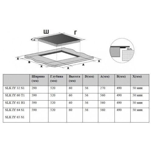 | Ширина для встраивания (см) | 56 |