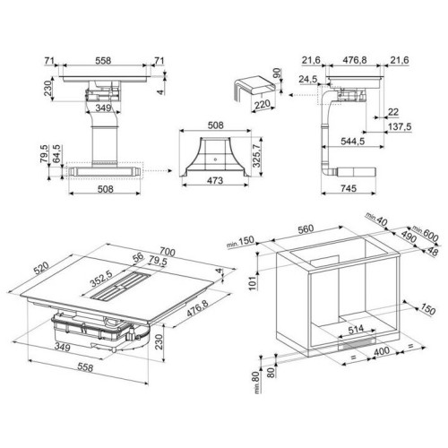Индукционная варочная поверхность с интегрированной вытяжкой Общие данные: Габариты: 23x70x52 см Габариты ниши для встраивания: -x56x49 см Количество конфорок: 4 индукционные Зоны расширения: 2 MultiZone Мощность конфорок: 4 x 2.10 кВт/ 22.0x19.7 см Индикаторы остаточного тепла для каждой конфорки Управление и функции: Управление Мультислайдер Расположение переключателей: фронтальное Слайдер: красный Количество Multizone: 2 Главный переключатель вкл./выкл. Уровни мощности: 9 Автовентиляция 2.0 Таймер окончания приготовления: 4 Опция Пауза Таймер поминутный: 1 Акустический сигнал окончания приготовления Индикация оставшегося времени Режим ограничения мощности: Да, заранее Режим ограничения мощности - пошаговый: 2800, 3500, 4500, 7400 Вт Режим Showroom Функция Поддержание тепла Быстрый стар Быстрый выбор уровня приготовления Постоянное автоматическое определение посуды с индикацией контроля Безопасность: Блокировка управления Автоматическое отключение при проливании Защита от случайного включения Дополнительная информация: Номинальная мощность: 7620 Вт Напряжение: 220-240 В Частота тока: 50/60 Гц Тип электрического кабеля: Универсальная Длина электрического кабеля: 120 см