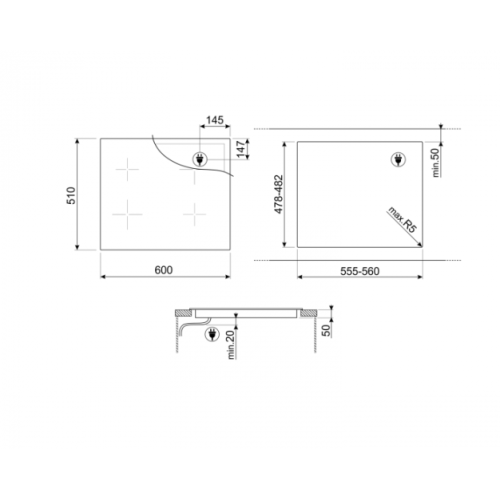 SMEG SI1M4634D Тип: Индукционная Тип встраивания: Ультранизкий профиль или вровень со столешницей Материал: Стекло Тип стекла: Стеклокерамика Тип управления: Compact Slider Plus Расположение переключателей: Фронтальное Слайдер Цвет подсветки слайдера: Чёрный Тип края стекла: Прямой край Цвет сериографии: Серый Программы и функции: Количество зон приготовления: 3 Количество индукционных зон приготовления: 3 Программирование времени: Автоматическое отключение Количество зон приготовления с функцией BOOSTER: 3 Количество Multizone: 1 Главный переключатель вкл./выкл. Уровни мощности: 9 Автовентиляция 2.0 Двойной Booster Опция Multizone Автоматическое объединение Multizone Тип изменяемой зоны: MultiZone Таймер окончания приготовления: 3 Опция Пауза Таймер поминутный: 1 Акустический сигнал окончания приготовления Индикация оставшегося времени Режим ограничения мощности: Заранее Режим ограничения мощности - пошаговый: 2400 a 7400 - step 100 Вт Режим Showroom Гриль Блокировка управления Функция Поддержание тепла Опция очистки Быстрый старт Быстрый выбор уровня приготовления Автоматическое определение диаметра посуды Постоянное автоматическое определение посуды с индикацией контроля Автоматическое определение наличия посуды: Минимум 9 см Автоматическое отключение при перегреве Автоматическое отключение при проливании Eco-Heat Индикация остаточного тепла Защита от случайного включения Дополнительные способы подключения: Двух- или трехфазное Тип электрического кабеля: Однофазное Мощность и размеры конфорок: Позиция 1-й зоны: Фронтальная левая Позиция 2-й зоны: Задняя левая Позиция 3-й зоны: Правая Тип 1-й зоны: Индукционная - Multizone Тип 2-й зоны: Индукционная - Multizone Тип 3-й зоны: Индукция - одинарная Размеры 1-й зоны: 21.0x19.0 см Размеры 2-й зоны: 21.0x19.0 см Размеры 3-й зоны: - Ø 25.0 см Размеры левой Multizone: 38.5x23.0 см Мощность 1-й зоны: 2.10 кВт Мощность 2-й зоны: 2.10 кВт Мощность 3-й зоны: 2.30 кВт Двойной Booster, 1-я зона: 3.00 кВт Двойной Booster, 2-я зона: 3.00 кВт Мощность BOOSTER, 1-я зона: 2.50 кВт Мощность BOOSTER, 2-я зона: 2.50 кВт Мощность BOOSTER, 3-я зона: 3.00 кВт Мощность Booster, левая Multizone: 3.70 кВт Потребление энергии, варочная поверхность: 189.6 Wh/Kg Потребление энергии, 1-я зона: 194 Wh/Kg Потребление энергии, 2-я зона: 191.7 Wh/Kg Потребление энергии, 3-я зона: 183 Wh/Kg Потребление энергии, 4-я зона: 195 Wh/Kg Номинальная мощность: 7400 Вт Напряжение: 220-240 В Напряжение 2: 380-415 В Частота тока: 50/60 Гц Длина электрического кабеля: 120 см Габариты прибора (ВхШхГ): 50x600x510 мм Стандартный вырез (ШхГ): 478-482x555-560 мм Вес нетто: 9.5 кг Вес брутто: 10.5 кг Бренд: SMEG Модель: SI1M4634D