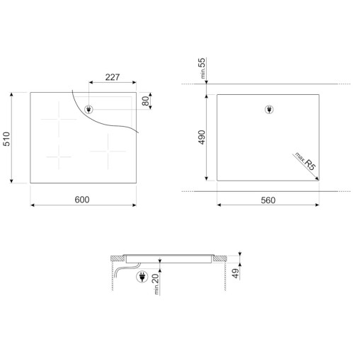 эстетика и управление Cтеклокерамика Suprema Управление Touch control Фронтальный край скошенный функциональность 3 индукционные зоны нагрева: Задняя левая – 1,4 кВт (Booster 2,5 кВт), ? 145 мм Передняя левая – 2,3 кВт (Booster 3,7 кВт), ? 210 мм Правая – 1,8-2,8 кВт (Booster 3,5-5,2 кВт), ? 180-280 мм 14 регулируемых уровней мощности Функция ограничения мощности 3 независимых таймера Акустический сигнал окончания приготовления Автоматическое определение диаметра посуды Индикация уровня мощности и времени приготовления Индикация остаточного тепла Функция автовентиляции безопасность Автоматическое выключение Защита от перегрева Защита при проливании Блокировка управления от детей Охлаждающий вентилятор технические характеристики Номинальная мощность: 7,35 кВт Напряжение: 220-240 В (380 – 415 В) Частота тока: 50/60 Гц