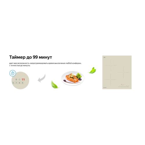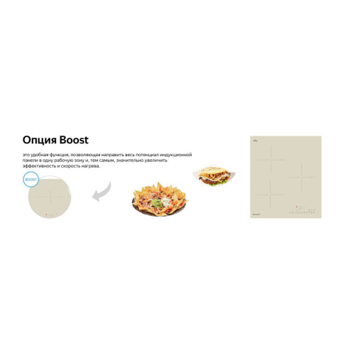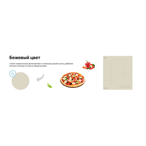Индукционная панель Weissgauff, выполненная в бежевом цвете и изготовленная из японского стекла Nippon Electric Glass с особым дизайном конфорок Cross-Zone и непрерывным нагревом! Она выводит на новый уровень понимание того, насколько эффективной может быть компактная индукционная варочная поверхность шириной всего 45 см! * Индукционная технология нагрева, при которой повышение температуры происходит непосредственно в дне самой посуды, позволит готовить гораздо быстрее, расходовать меньше электроэнергии и быть уверенным в том, что