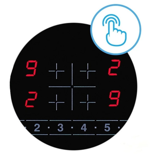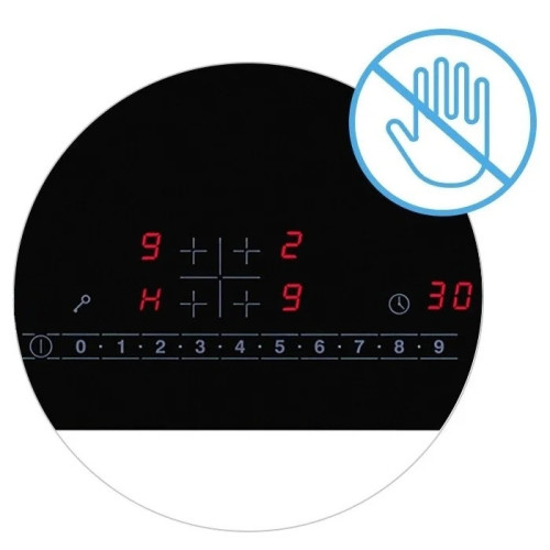 Безопасность защитное отключение конфорок, индикатор остаточного тепла, кнопка блокировки панели