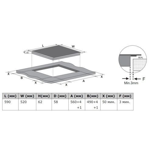 Ширина для встраивания (см) 56