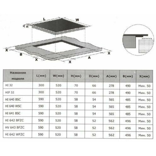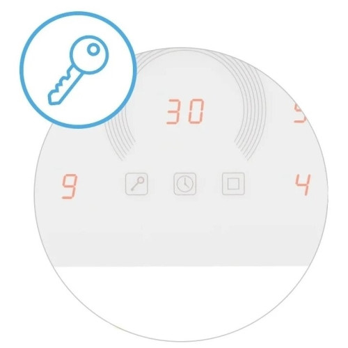 Безопасность защитное отключение конфорок, индикатор остаточного тепла, кнопка блокировки панели