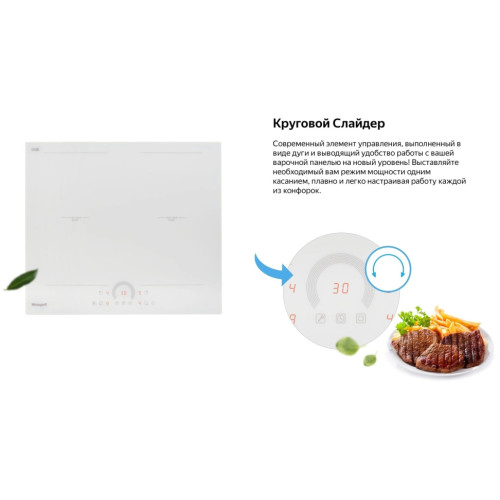 Варочная панель, оснащённая технологией непрерывного нагрева, свободной зоной Flex Zone и специальным круговым слайдером One Touch - это наиболее передовая из всех индукционных панелей Weissgauff, являющаяся настоящей вершиной сочетания качества и технологий Индукционная технология нагрева, при которой повышение температуры происходит непосредственно в дне самой посуды, позволит готовить гораздо быстрее, расходовать меньше электроэнергии и быть уверенным в том, что