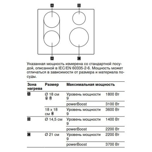 Заводские данные Гарантия 1 год Страна Испания Ключевые преимущества Обратите внимание 17 ступеней мощности Удачное решение Функция reStart Важная особенность Функция powerBoost Пользователи оценят Блокировка от детей Хорошо придумано Таймер с отключением Тип варочной панели Варочная панель независимая Функции Автоматический выбор зоны нагрева Да Режимы работы Быстрый нагрев Да Индикация Индикация остаточного тепла Да Индикация отсутствия посуды Да Индикация выбранной мощности Да Корпус Края панели скошенные Сенсор наличия посуды Да Безопасность Защита от случайного включения Да Управление Размещение панели управления спереди Тип управления электронный Электропитание Потребляемая мощность 4600 Вт Цвет Цвет черный Цвет рамки