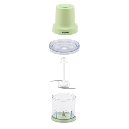 HYUNDAI HYC-P3128 – это удобное и эргономичное устройство для быстрого и эффективного измельчения продуктов. Прочный пластик, из которого выполнены корпус и чаша девайса, легко отмывается от любых пятен. Также он отличается лёгкостью и устойчивостью к повреждениям. Благодаря небольшому весу и компактным габаритам прибор можно взять с собой куда угодно, даже в далекую командировку. Много места для него не потребуется. Особенно это оценят любители богатого витаминами смузи из свежих фруктов или овощей. И, конечно, обладатели небольших кухонь. Мотор HYUNDAI HYC-P3128 работает от электричества и имеет 350 Вт мощности. Также в него встроен импульсный режим, чтобы прибор с лёгкостью справлялся даже с плотными продуктами, требующими силы для измельчения. Ножи устройства изготовлены из материала, устойчивого к появлению коррозии, - качественной нержавеющей стали. Она не только гарантирует большой срок эксплуатации, но и проста в уходе. В комплекте с HYUNDAI HYC-P3128 поставляется сменная насадка. Она служит для очистки чеснока. Объём пластиковой чаши HYUNDAI HYC-P3128 составляет 0,8 л. Снизу прибор снабжён прорезиненными ножками, которые успешно препятствуют проскальзыванию, когда устройство работает.